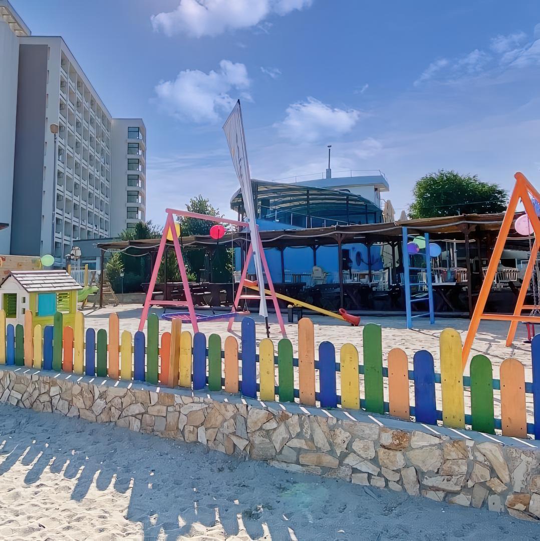 La noi vei găsi acces direct la o plajă curată, cu nisip fin, șezlonguri confortabile și umbrele acoperite cu stuf – locul perfect pentru o vacanță de neuitat la Marea Neagră.
